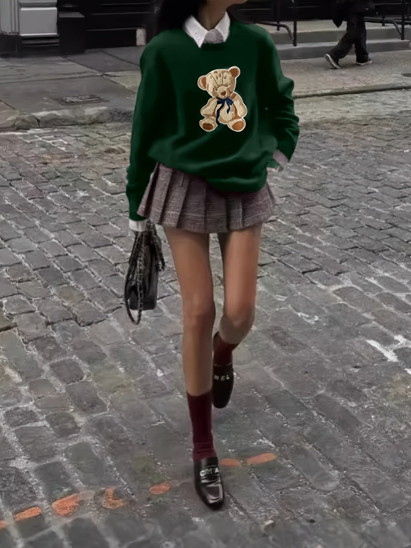סוודר טדי™ משלב בד רך עם הדפס דובון חמוד שמוסיף חן וקלילות למראה היומיומי.