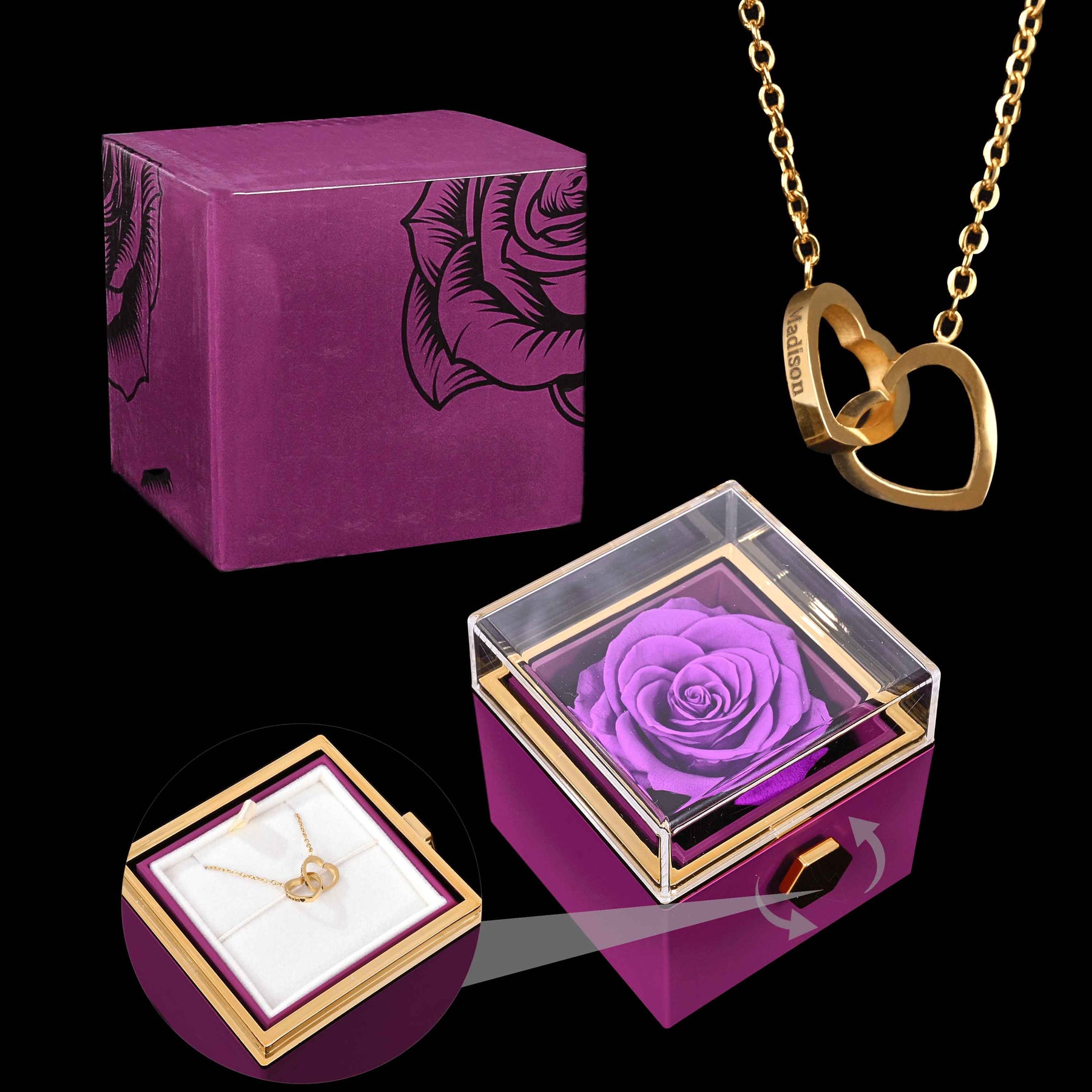 קופסת ורד נצחי™ משלבת ורד שמחזיק מעמד לאורך זמן עם שרשרת עדינה וחרוטה בהקדשה אישית, ליצירת חוויה רומנטית ויוקרתית.